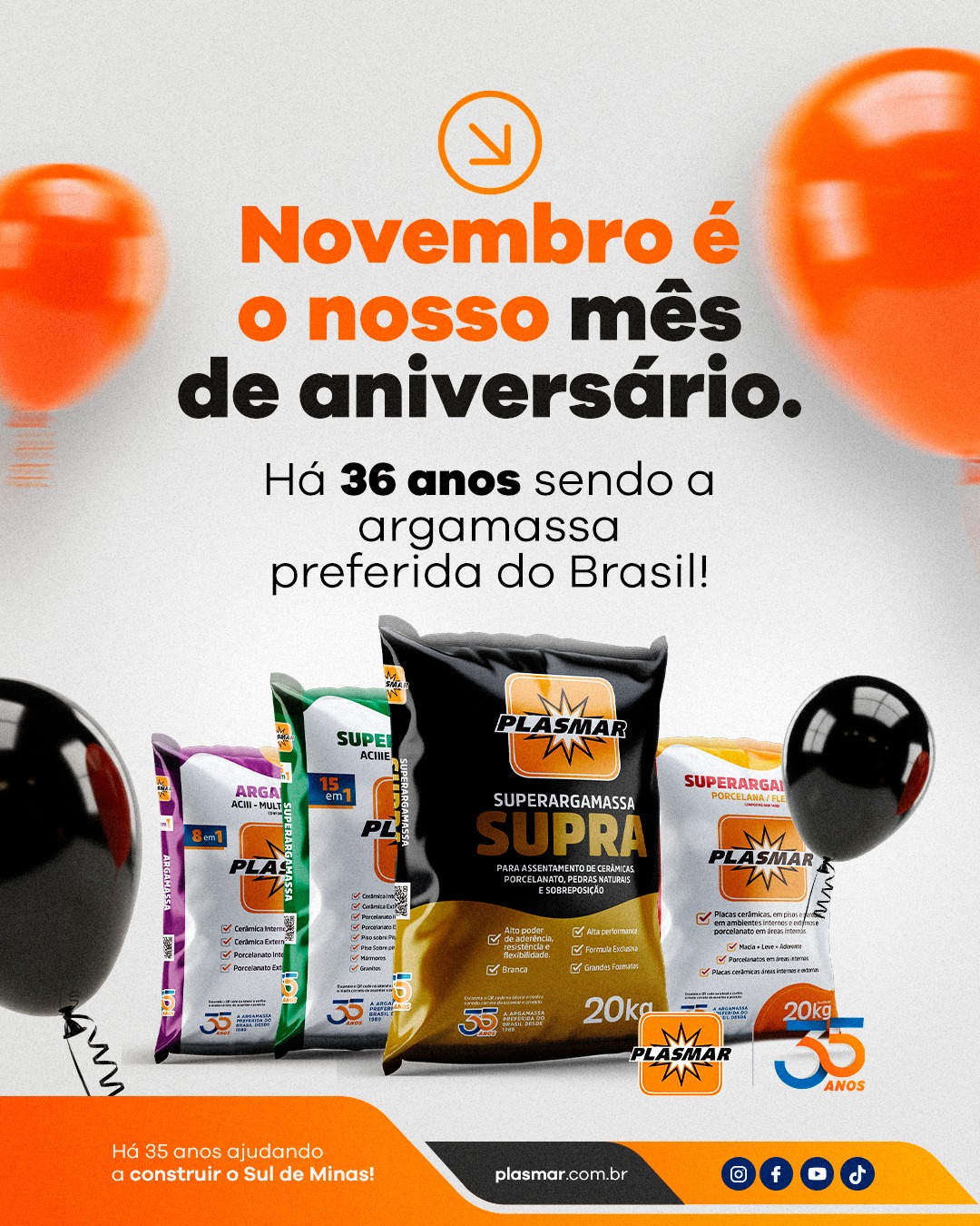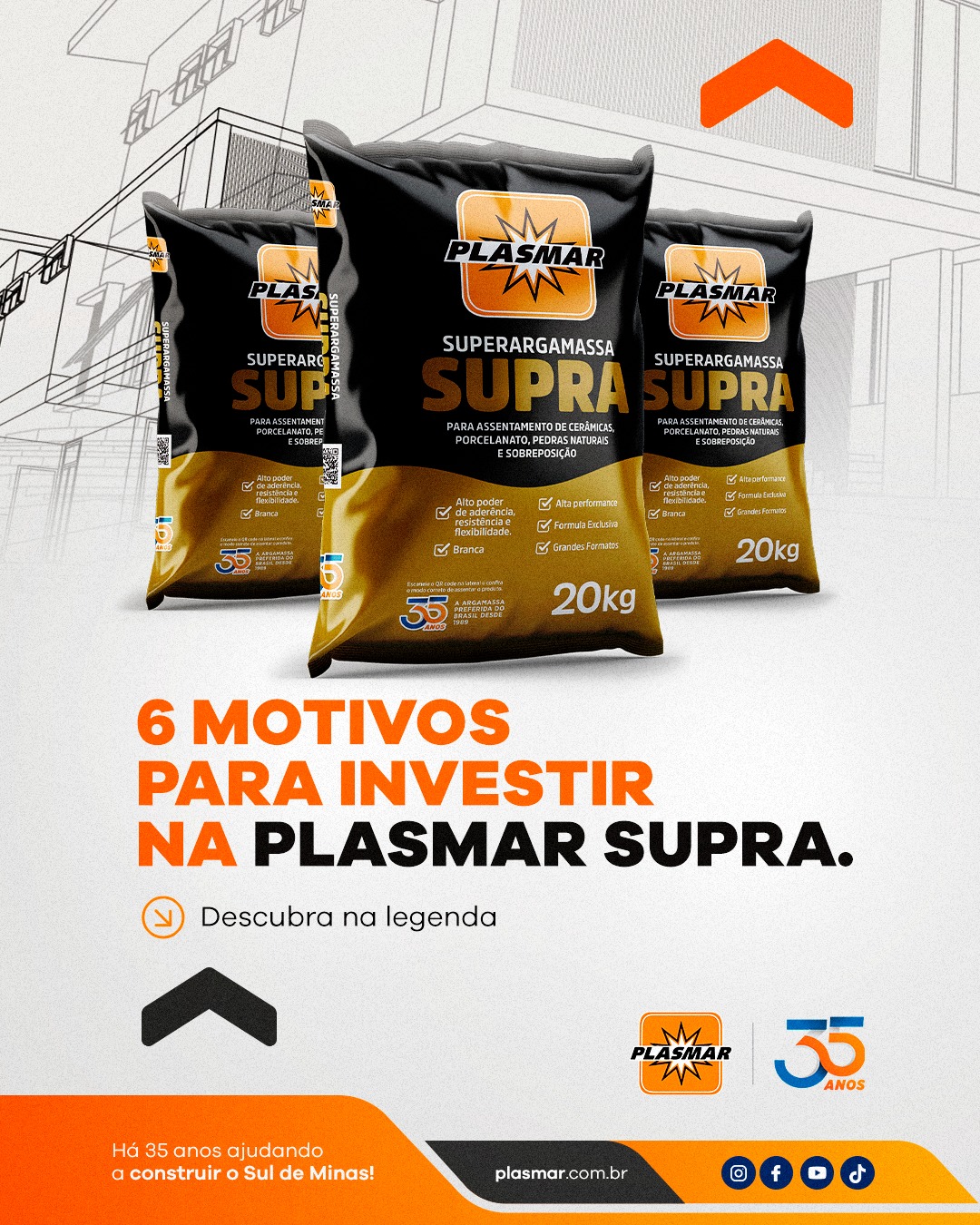 A PLASMAR é a única indústria de argamassas no sul de Minas Gerais, conhecida pela qualidade e inovação. Sua unidade fabril de 50.000m² distribui produtos para todo o Brasil, gerando empregos e impulsionando o desenvolvimento econômico. A empresa também investe no agronegócio, imóveis e hotelaria.